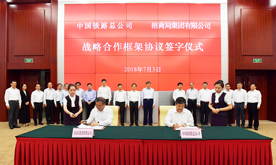 图为7月3日,中国铁路总公司与招商局集团有限公司签署战略合作框架协议。 刘之光 摄本报北京7月3日电 (记者荣志远)7月3日下午,中国铁