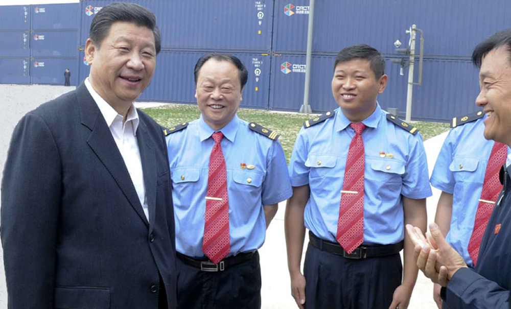 港区内,集装箱林立;图板上,铁路横跨亚欧大陆直达欧洲。习近平来到郑州国际陆港,详细了解郑州建设物流枢纽、中欧铁路物流中心情况。